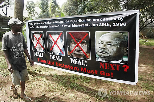 우간다 수도 캄팔라에서 야당 지지자가 다음날 열릴 장기 독재자 축출 기념 집회를